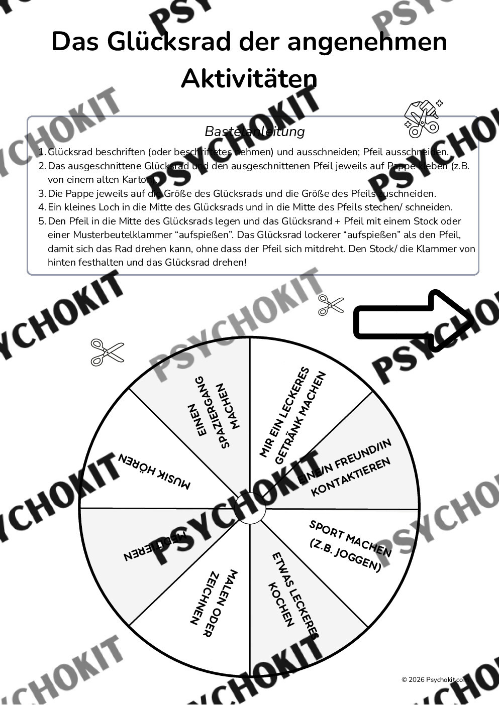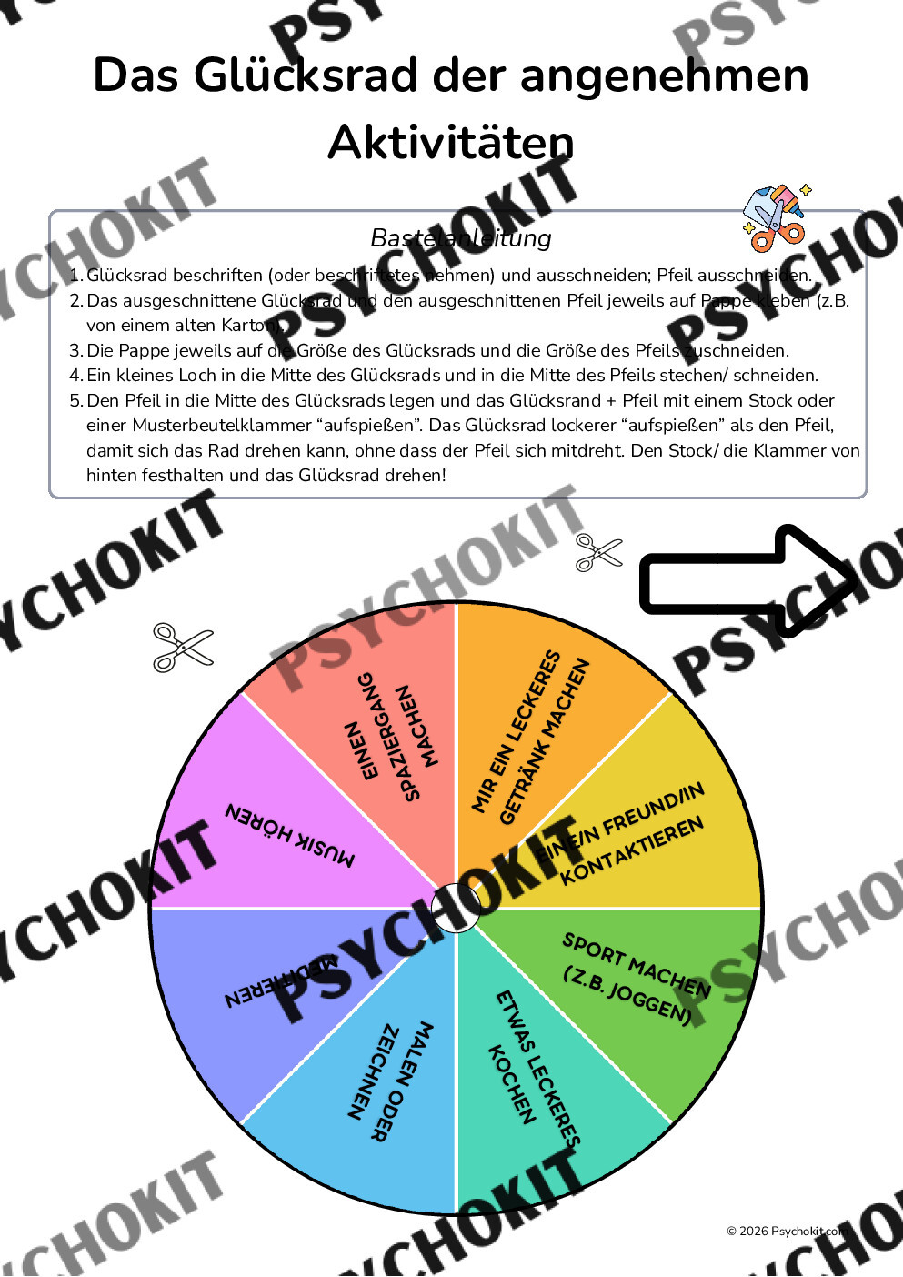 Glücksrad der angenehmen Aktivitäten – Aktivitätenaufbau & Selbstfürsorge zum Basteln